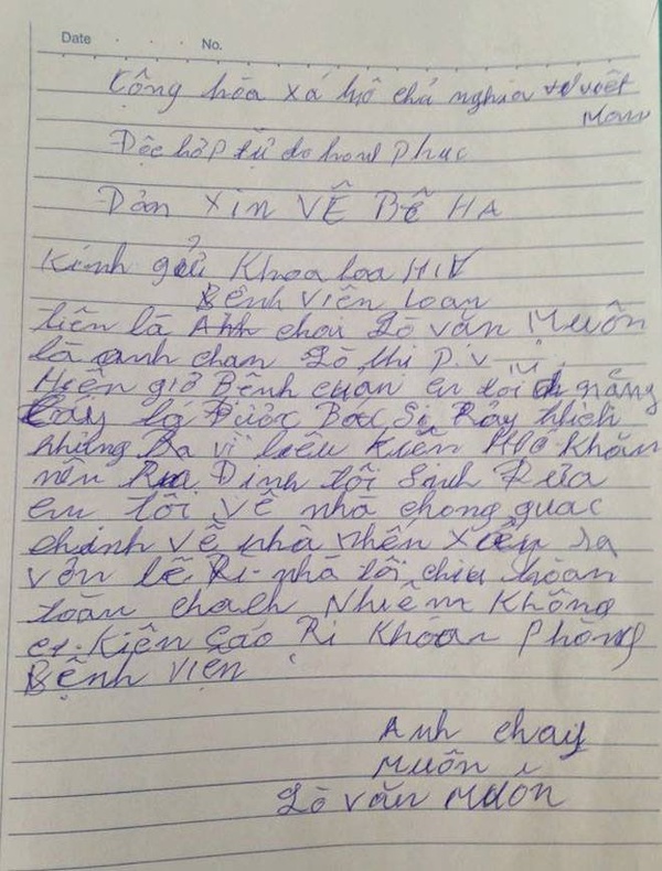 Đơn của người anh trai xin đưa bệnh nhân Lò Thị Phanh