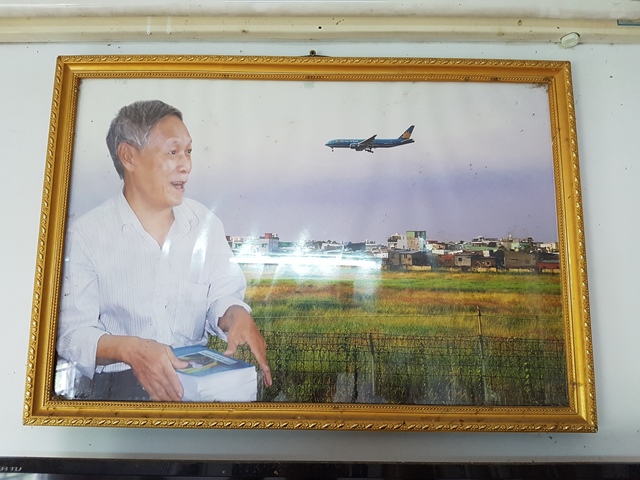 Trên bàn làm việc, tôi nhìn thấy một bức hình soi lớn mà Nguyễn Sông Ba đã ghép Nguyên Minh ngồi trầm tư bên cửa sổ, trên đầu có một chiếc máy bay đang cất cánh.