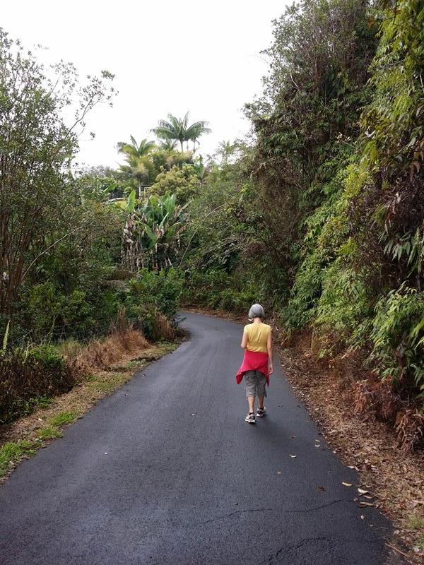 Tâm hồn và thể xác tôi đổi mới mỗi khi bộ trên con đường làng nằm trên núi lửa Mauna Kea này. Thính giác và thị giác là hai giác quan được no đầy nhiều nhất. Đôi tai tôi như được gắn thêm một máy khuếch đại âm thanh để nghe rõ tiếng suối chảy ào ào dưới vực sâu, như dòng xe cộ; tiếng chim ó Hawaiian đập cánh “phùm phụp, phùm phụp” trên không, đang tìm mồi; tiếng kêu quen thuộc của đàn Peeps trong lùm cây ở giữa cánh đồng, tiếng ếch coqui “cồ kí, cồ kí” trong vòm cây, sát đường làng; tiếng ếch to bằng hai bàn tay, kêu “ồm ồm” như thiền nhân; tiếng máy bay trực thăng chở du khách đi coi thác nước hay núi lửa. Một khúc đường làng được ướp đẵm mùi hương của Pikaki, một loại hoa từa tựa hoa Nhài bên ta và mùi ngai ngái của đất, vì mới bị lật lên bởi lũ heo rừng đêm qua, khi chúng xới lên để tìm sâu, ốc hay củ.