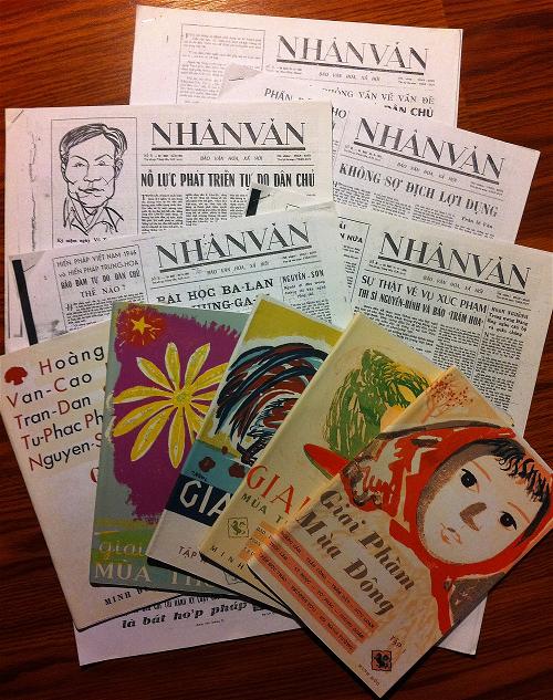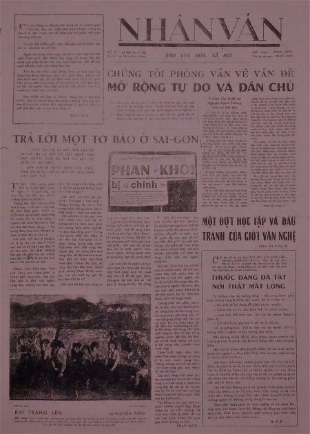 Trong khi Giai Phẩm ra mắt tập đầu vào đầu năm 1956 thì mãi đến ngày 20 tháng 9, 1956 số thứ nhất của báo Nhân Văn mới xuất bản. Nhân Văn được Nguyễn Hữu Đang khởi xướng với Phan Khôi nắm vai trò chủ nhiệm và Trần Duy làm thư ký tòa soạn. Mỗi tờ Nhân Văn gồm tổng cộng 6 trang, in theo khổ 38x55cm và bán với giá 300 đồng một tờ. Số đầu của Nhân Văn được xuất bản với tổng số 2,000 bản. Số 2 xuất bản vào ngày 30 tháng 9 với 6,000 bản, số 3 xuất bảo vào ngày 15 tháng 10 với 7,000 bản, số 4 xuất bản ngày 5 tháng 11 với 12,000 bản, và số 5 xuất bản ngày 20 tháng 11 với khoảng 20,000 bản.
