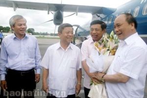 Ảnh: Chủ tịch UBND tỉnh Võ Kim Cự đón tiếp Phó Thủ tướng Nguyễn Xuân Phúc đến thăm Vũng Áng hồi tháng 9/2014. Nguồn: Tòa án Nhân dân tỉnh Hà Tĩnh.
