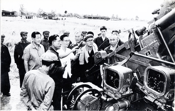 Hình 3: Bộ trưởng Quốc Phòng Khmer Đỏ Son Sen (giữa), đứng bao quanh bởi các cố vấn Trung Quốc 1977 [nguồn: Trung tâm Tài liệu Cambodia].