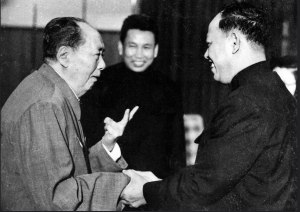 Hình 2: Chủ tịch Mao Trạch Đông tiếp đón cấp lãnh đạo Khmer Đỏ tại Bắc Kinh, từ trái: Mao Trạch Đông, Pol Pot và Ieng Sary. Khmer Đỏ rập khuôn theo Mao, được hậu thuẫn và viện trợ tối đa của Bắc Kinh, đã tiến chiếm Nam Vang 17.04.1975 khởi đầu một chế độ diệt chủng với 2 triệu người chết, trong đó không ít nạn nhân là người Việt, người Chăm Islam trong khoảng thời gian từ 1975-1979. [nguồn: photo AFP]