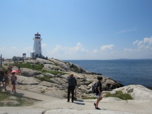 Xe chạy khoảng chục phút trên cây cầu Confederation, từ Prince Edward Island qua thủ đô Halifax của Nova Scotia, chúng ta phải tới coi…đá! Đá có chi mà coi, tôi nghĩ vậy trước khi tới địa điểm có cột hải đăng cho tàu đi biển nổi tiếng Peggy Cove Lighthouse. Cột đèn Peggy Cove, tuy là biểu tượng được du khách khoái chụp hình nhất tại vùng biển maritime, và được công nhận là một trong những hải đăng nổi tiếng nhất thế giới, nhưng tôi chẳng thấy hấp dẫn chút nào. Bãi đá nằm trải dài trên một vùng rộng lớn, nơi hải đăng được dựng lên, mới là thứ được du khách già trẻ lớn bé thích thú. Những tảng đá bị nước biển va đập trong bao nhiêu triệu năm trở thành một quần thể đá rộng lớn và đa dạng. Du khách bước men theo những khối đá to lớn hoặc nhảy từ khối đá này qua khối đá khác để leo lên chụp hình. Tôi không còn ở tuổi nhảy nhót chi nên cứ rạp người xuống luồn lách trên những khối đá chênh vênh. Kể cũng có cảm giác khi đối đầu với hiểm nguy té ngã. Những khối đá nằm sát dưới nước, rong rêu và đen đủi, được cảnh giác là không nên bước lên, nhưng những thanh niên thiếu nữ trẻ người non dạ vẫn dọ dẫm qua từng khối đá. Tuổi trẻ có thú vui mà những người không còn trẻ thấy…điên. Bất chấp hiểm nguy. Vui chơi là chính. Lỡ xảy chân là tiêu đời cũng chẳng sao! Đã có nhiều người bị sóng đánh. Cũng đã có người bị hất xuống biển chết đuối, nhưng chưa thấy quan tài chưa đổ lệ, những người trẻ tuổi vẫn vui cười trêu ngươi thần chết trước những cái lắc đầu của những người…như tôi.