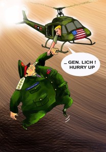 Hai kẻ bị chỉ đích danh “qùi gối” trước Tầu không ai khác hơn là Bí Thư Quân Ủy Trung Ương Nguyễn Phú Trọng và Bộ Trưởng Quốc Phòng Ngô Xuân Lịch. Ấy vậy mà mấy hôm sau chính ông bộ trưởng lại là kẻ đi Tây cầu viện.