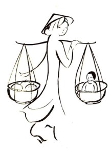 Ôn làm việc cho trường Dòng Pèllerin không thể thường xuyên về thăm nhà nên cứ mỗi tháng Mệ lại gồng gánh lên tỉnh. Mẹ được đặt ngồi trong chiếc thúng phía trước, chiếc thúng phía sau chứa những hoa quả Mệ hái từ vườn nhà. Đường xa gánh nặng lặn lội thân cò, đôi guốc mộc có làm Mệ rát bỏng đôi chân?