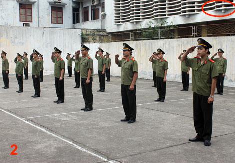 Chiều chiều, chừng 16 giờ 30, quản giáo và lính canh tập trung xếp hàng thể dục như trong ảnh 2. Tôi, ở buồng giam bịt bùng ngay vị trí khoanh tròn đỏ ấy, không nhìn thấy, chỉ nghe tiếng vọng vào. Họ tập võ, vung chân múa tay “hừ hự” theo nhịp một hai- hai một gì đấy. Xong, lần nào cũng kết thúc bằng bài hô: