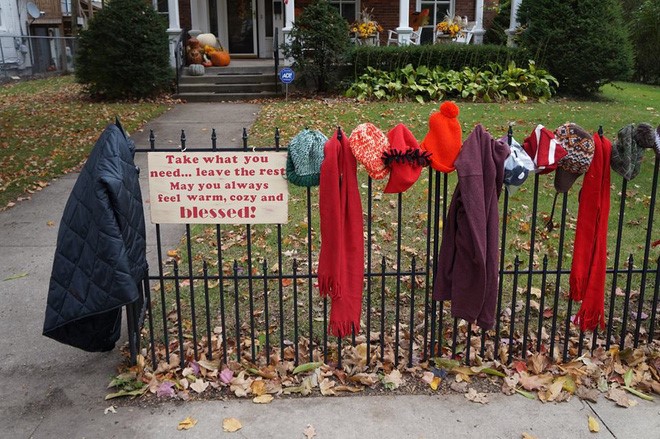 Có nhiều giúp nhiều, có ít giúp ít, không có tiền trong túi cũng có thể mang lại chút ấm áp cho những người thiếu thốn trong những ngày lễ cuối năm. Bà Salisbury, cư ngụ tại thành phố Goshen, tiểu bang Indiana, có sáng kiến giúp người khó khăn bằng cách lập ra Hàng Rào Phước Lành The Blessing Fence. Nhà bà có một hàng rào dài trước nhà, bà mang quần áo ấm không dùng nữa ra giăng trên hàng rào và dựng một tấm bảng. “Hãy lấy những thứ bạn cần, để lại những thứ khác. Mong bạn luôn cảm thấy ấm áp, ấm lòng và được chúc lành”. Dần dần có nhiều người tới treo quần áo trên hàng rào “Phước Lành” đó. Những người cần áo ấm trong những ngày cuối năm giá rét tới chọn thứ họ cần. Bà Salisbury nói với ABC News: “Đây là những quyên góp từ những người vô danh, tặng cho những người vô danh. Tôi không bao giờ ghi lại tên của người cho cũng như người nhận”. Không cần lời khen tặng, không phô trương, chỉ có tình người với người. San sẻ với nhau những của cải trần gian. Để quảng bá, bà chụp hình, post lên Facebook. Nhiều người biết tới chiếc hàng rào tình nghĩa đó. Họ mang quần áo, khăn choàng, mũ nón tới vắt lên hàng rào. Càng ngày số lượng càng nhiều. Chiếc hàng rào đã giúp sưởi ấm cho nhiều người trong đó có rất nhiều trẻ em. Tình nghĩa của bà Salisbury còn trải rộng tới cách cho của bà: “Khi nhìn thấy có người tới, nếu có nhà, tôi sẽ mở cửa ra và nói lời cám ơn với họ. Có người thì vẫy tay cười, có người vào gõ cửa nhà để chỉ nói cám ơn, có người còn để lại thư cám ơn nữa!”.