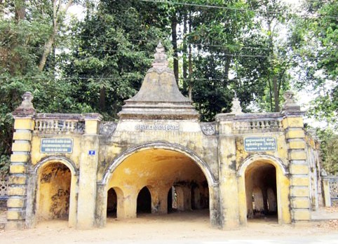 Hình 10: Trái, Chùa Hang với kiến trúc cổng chùa giống như cái hang và khuôn viên chùa rất rộng là rừng tự nhiên với những cây cổ thụ nơi sinh sống của nhiều loại chim muông; Phải, Cù lao Quy nằm giữa Sông Hậunnhư một thiên đường cây trái đặc trưng của Đồng bằng Nam Bộ. [nguồn: internet]
