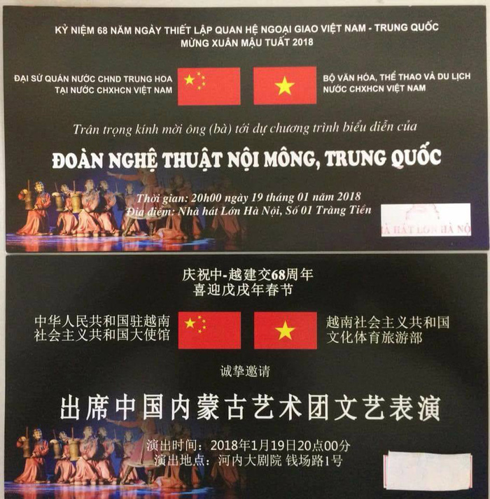 Tối 19.1.2018 ở Hà Nội, bộ Văn hóa, bộ Lễ của một nhà nước, tổ chức linh đình đêm hát xướng, nhảy múa của đoàn nghệ thuật Nội Mông Tàu Cộng! (*)