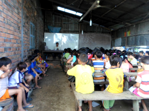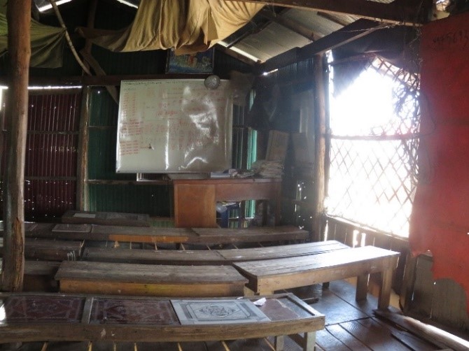 Thì cũng gọi là trường vì quen miệng chứ thực ra thì đây là những lớp học tuyềnh toàng, tạm bợ. Tuy học phí mỗi ngày chỉ là 500 riels tiền Miên (cỡ 12 xu U.S.D) nhưng số học sinh hiện diện vẫn rất thất thường vì còn tùy thuộc vào khả năng (chạy ăn từng bữa) của cả gia đình.