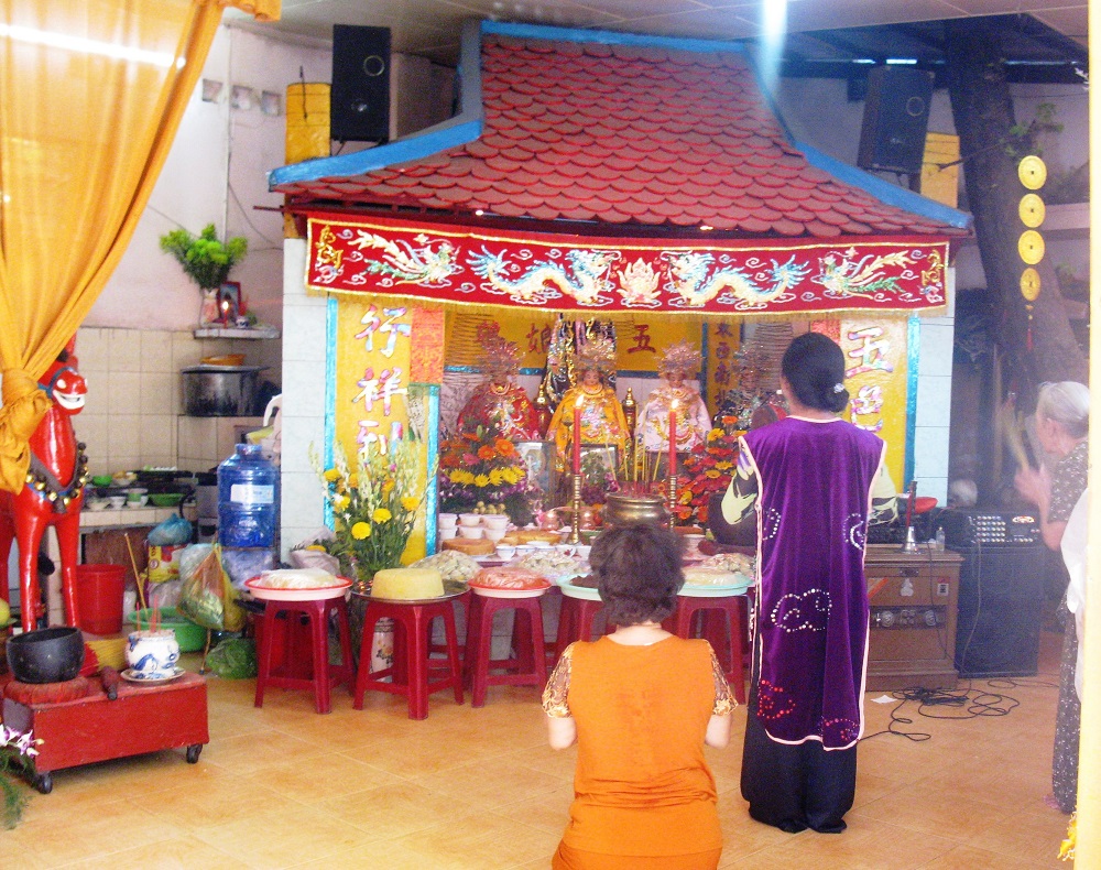 Được mời tế Bà đã nhiều năm liên tục tại ngôi miếu này, chị Năm Tốt, trưởng nhóm, cho biết: “Hàng năm, cứ cỡ 18,19 tháng này, tôi đi kêu mấy chị em quá khó là khó vì ai nấy tứ tán hết, cũng tại cùng lúc quá nhiều miếu Ngũ Hành ở Sài Gòn đều cúng vía Bà. Như xong ở đây, đến năm giờ chiều là chị em tôi phải lập tức chạy xuống miếu Bà ở Thủ Đức”.