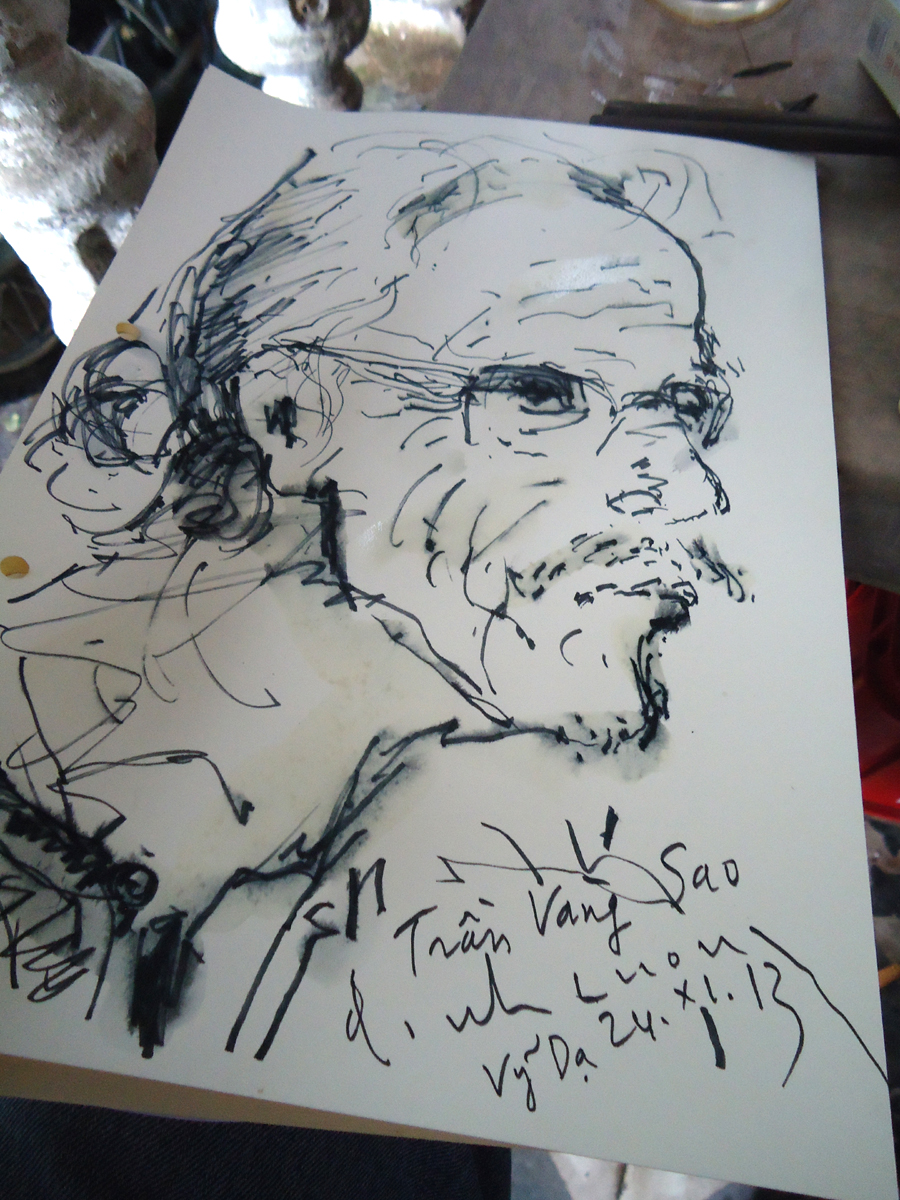 Mấy em học trò cỡ như Ngô Tuấn Anh, giỏi môn văn là thế, lớn lên có “ma đưa lối quỷ dẫn đường” để bước theo dấu chân của cha chú Trần Vàng Sao từng quàng xiên trên đường mòn? Nhảy núi, lên xanh theo kháng chiến (1965) rồi bị trù dập, thanh trừng (tiếc cho bút hiệu Vàng Sao!). Sau 1975 về lại Huế, sống trong nghèo đói, trong lạc lõng, trong đơn độc, trong bạc tình, trong tất cả sự lãng quên mà đồng chí, bạn bè cùng thời đã lãnh đạm quay lưng. Cuối đời, nhà thơ say sưa vẽ, duy chỉ chân dung Sư tổ Bồ Đề Đạt Ma. Do đâu? Bài thơ “Tau Chưởi” có ghi năm tháng bên dưới (29.6.1997) có thể dùng để ký hoạ, rõ nét một chặng đời bất hạnh của Trần Vàng Sao: