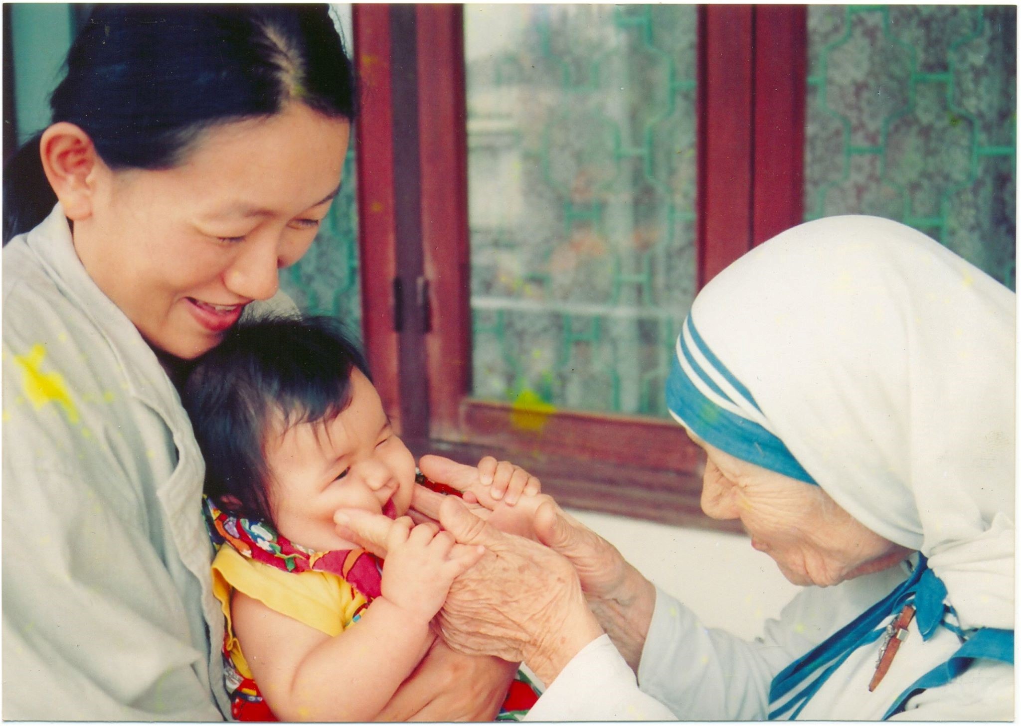 trong tay mẹ Yoshii Michiko và trong mắt mẹ Teresa.