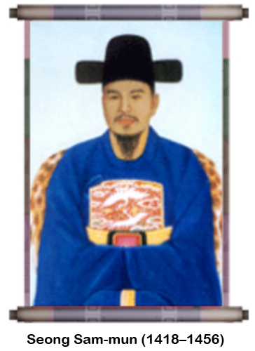 Tương tự, Seong Sam-mun (1418–1456) cũng là một trong “sáu quan thượng thư tử tiết,” và là lãnh tụ âm mưu ám sát Vua Sejo. Sam-mum từ chối đề nghị ân xá, và bác bỏ tính chính danh của Sejo. Sam-mun đọc bài thơ dưới đây trong nhà tù.