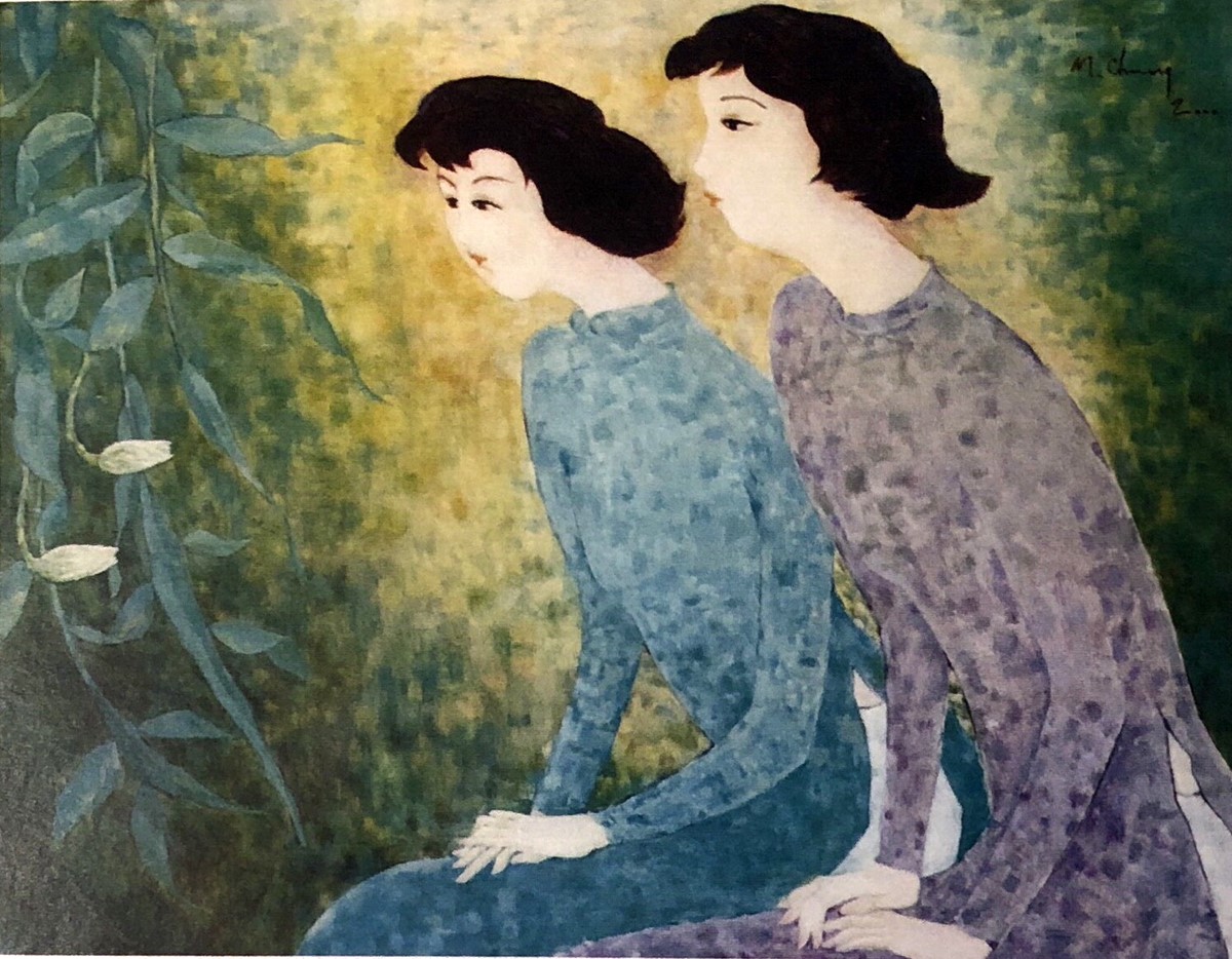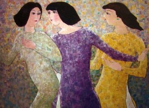 Hình 10b: trái, Ba Chị Em, sơn dầu trên bố 40” x 52”, 2000; phải, Người Đàn Bà, sơn dầu trên bố 40” x 52”, 2000 [tư liệu gia đình Mai Chửng]
