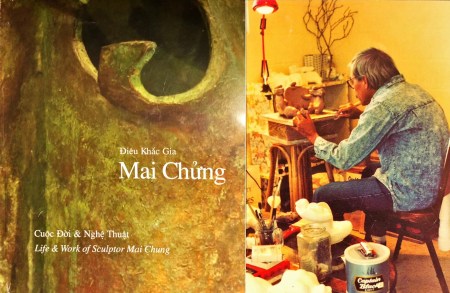 Hình 12: Một tuyển tập song ngữ Việt Anh nhan đề “Điêu khắc gia Mai Chửng: Cuộc Đời và Nghệ Thuật – Life & Work of Sculptor Mai Chửng” do gia đình thực hiện ra mắt tháng 9 năm 2006 nhân ngày giỗ thứ 5 của Mai Chửng. trái: bìa 1, phải bìa 4. Phần Anh Ngữ của Thạch Hãn Lê Thọ Giáo. [tư liệu gia đình Mai Chửng]