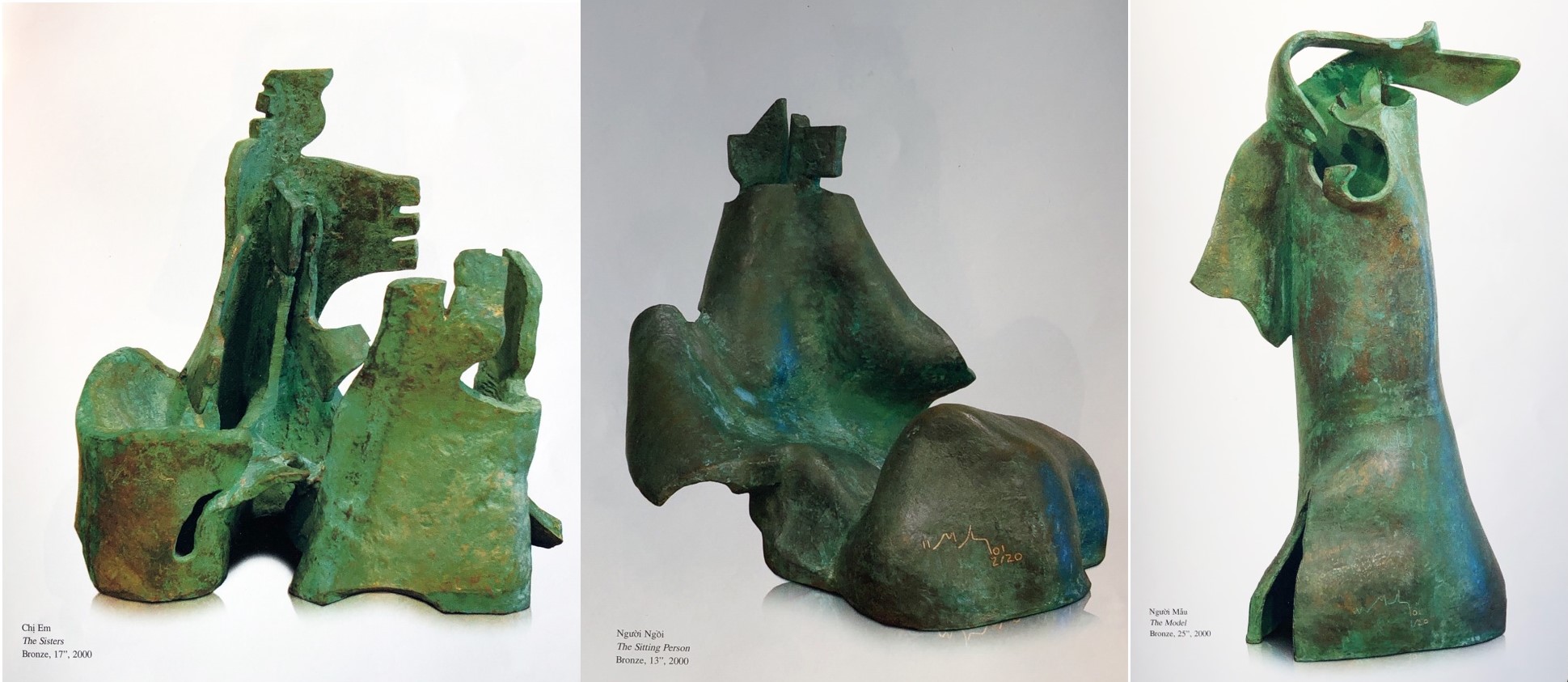 Hình 9b: từ trái, (4) Chị Em, 2000, Bronze 17”; (5) Người Ngồi, 2000, Bronze 13”; (6) Người Mẫu, 2000, Bronze 25”