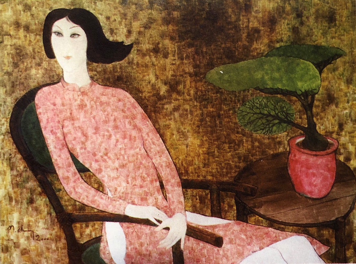 Hình 10a: Thiếu nữ và Hoa Quỳnh, sơn dầu trên bố 40” x 52”, 2000 [tư liệu gia đình Mai Chửng]