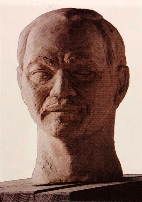 Hình 13: Tượng Mai Chửng bằng thạch cao, do Dương Văn Hùng bạn đồng môn của MC, thực hiện để tặng gia đình Mai Chửng trong dịp ra mắt sách Điêu Khắc Gia Mai Chửng: Cuộc Đời & Nghệ Thuật do VAALA tổ chức vào ngày Thứ Bảy 04.03.2006 tại phòng sinh hoạt Lê Đình Điểu, Người Việt. Một số tác phẩm sáng tạo vào những năm cuối đời của Mai Chửng, cũng được Hội Văn Học Nghệ Thuật Việt Mỹ triển lãm trong dịp RMS này. [tư liệu Dương Văn Hùng]