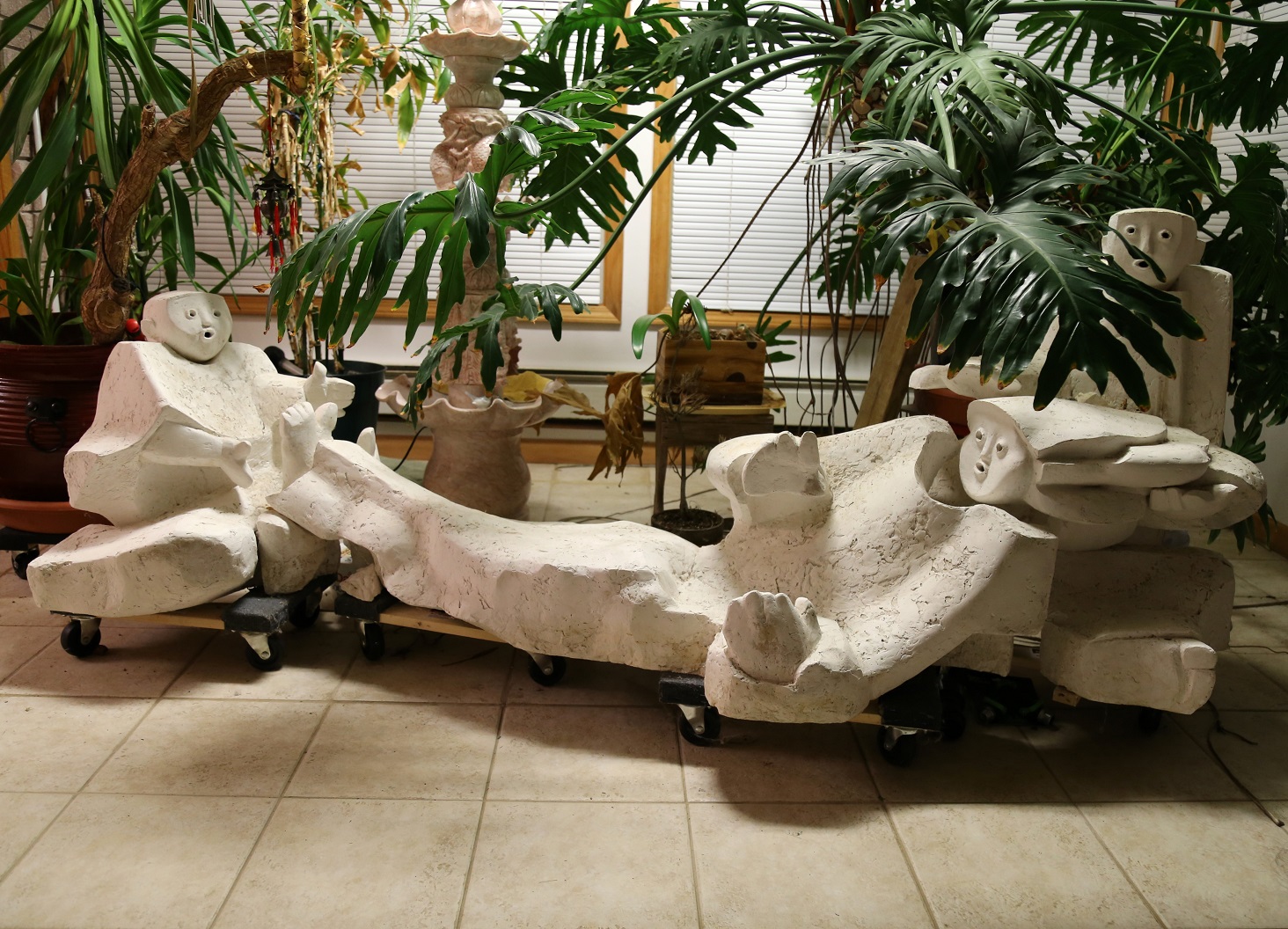 Hình 8: Một bức tượng Mẹ Con khác, chất liệu thạch cao của Mai Chửng thực hiện ở Hawaii 1990; nguồn kiếm sống với toàn thời gian của Mai Chửng ở Hawaii tới 1997 là nghề lái taxi. [tư liệu gia đình Mai Chửng]