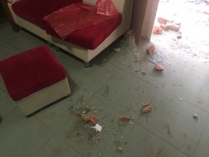 Phòng ngủ bị ném gạch tại nhà của cô Đỗ Thị Minh Hạnh. Ảnh: RFA