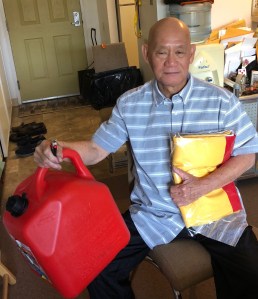 Và rồi hai ngày sau đó, ngày 2 tháng 7, chuẩn bị lái xe đưa bạn đi thăm thầy cũ ở San Diego, Nam chợt thấy trên bảng đồng hồ xe / dashboard có báo hiệu đèn vàng, không biết chuyện gì, Nam rẽ qua một garage đàn em. Cậu ấy cho biết, đèn báo hiệu có thể là do một bánh xe bị xẹp. Lại thấy có mùi xăng bốc ra, cậu ấy mở cốp sau và la Nam: “Trời nóng cả trăm độ, chú để bình xăng sau xe có thể cháy nổ bất cứ lúc nào, như vậy đâu có được!” Nam lấy cớ sắp đi xa xuống San Diego, sợ thiếu xăng nên đem theo xăng secours.” Cậu ấy vừa vá lốp xe và vừa giúp Nam đổ cả 5 gallons xăng-super vào bình xăng xe.