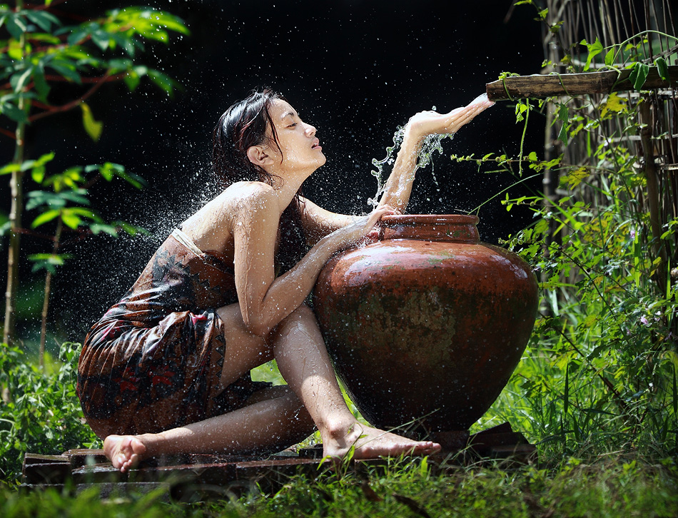 Vườn vắng lặng. Ao nước trong vắt. Chỉ có con chim vàng anh nhảy nhót trên cành xoan. Loan chợt mỉm cười khi thấy khuôn mặt của mình in trên mặt gương sáng loáng. Cô đưa mắt nhìn quanh trước khi lội xuống nước. Một thoáng nghi ngại lẫn thích thú. Ùm! Nước bắn lên tung toé.