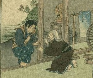 Ngày xửa ngày xưa ở xứ Nhật Bản, có lão tiều phu nghèo, sống trên một ngọn núi với vợ. Họ đều đã luống tuổi và không có con. Hàng ngày, lão tiều phu vào rừng đốn củi, còn bà ở nhà dệt vải.