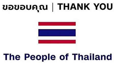 Without national boundaries, working in unity. Thank you (from) the people of Thailand. Thank you (from) the people of Thailand. Không biên giới quốc gia, hành động hợp nhất. Lòng tri ân (từ) dân chúng Thái Lan.