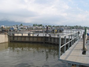 Hình 4: Âu thuyền Tắc Thủ do Cty CP Tư vấn XD Thủy lợi II thiết kế và xây dựng từ 2001 tại ngã ba sông Ông Đốc – Cái Tàu – sông Trẹm, Cà Mau, với kinh phí gần 80 tỉ đồng nhưng sau khi hoàn thành năm 2006, đã chứng tỏ là vô dụng, mà còn gây thêm cản trở giao thông. [photo by Nguyễn Kiến Quốc] (6)