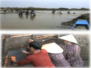 Hình 8: Người dân Bạc Liêu và rồi lan sang Cà Mau rủ nhau đi phá cống đập ngăn mặn. [nguồn: tư liệu VTV, Giữa đôi dòng mặn ngọt 1998] (6)