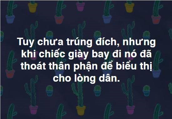 FB Uyên Vũ cũng thế: “Tuy chưa trúng đích nhưng khi chiếc dầy bay đi nó đã thoát thân phận để biểu thị cho lòng dân.”