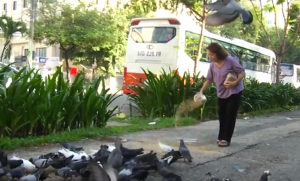 Không phải chị chỉ chăm sóc đàn thú ở vườn Tao Đàn không thôi đâu, chị còn đổ nước, rải thóc, gạo cho những đàn bồ câu khác ở góc một số đường trong thành phố, đặc biệt là đàn bồ câu và chim sẻ trước nhà Văn Hóa Lao Động, chúng đậu sẵn trên nóc những building cao trông chờ chị, thấy chị đến là chúng ào xuống, ríu rít quấn quít quanh chị.