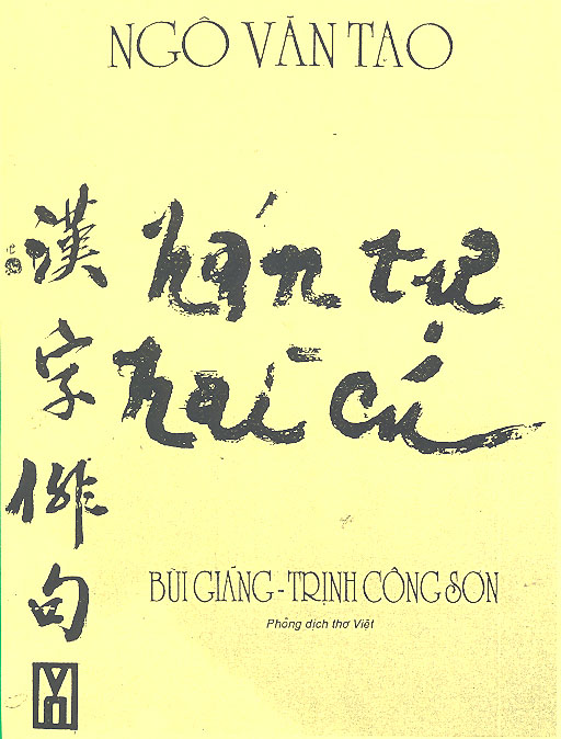 Nhưng cũng ngay sau đó, lẩn thẩn thế nào tôi lại tình cờ thấy tập thơ HÁN TỰ HÀI CÚ [2] được xếp sẵn cạnh đấy trong tủ sách. Mở ra, tôi mới từ từ nhớ lại rằng tập thơ này có một quá trình thực hiện khá là ly kỳ: Ban đầu Hán Tự Hài Cú do ba nhân vật viết chung là Bùi Giáng – Trịnh Công Sơn và Ngô Văn Tao, được xuất bản vào năm 1994. Sau đấy bốn năm, Bùi Giáng mất (1926 – 7.10.1998); và rồi Trịnh Công Sơn cũng rời khỏi cõi đời (28.2.1939 – 1.4.2001), còn Ngô Văn Tao côi cút một mình ở lại, ông liền cho in lại lần nữa cuốn này vào giữa năm 2001, để “duy trì một nguồn thơ và tiếc thương tình bạn”, Ngô Văn Tao viết vậy.