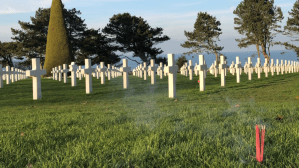 Từ nơi này đi bộ hai cây số đến nghĩa trang đồng minh ở làng Ranville, ngôi làng đầu tiên trên đất Pháp được giải phóng sau khi người lính Dù chiếm giữ cầu Pegasus. Trên bản đồ là nghĩa trang của Anh, nhưng ở góc bên trái từ cổng vào có 330 bia mộ người lính Đức, chia cùng mảnh đất nghĩa trang với 2.235 người lính nhảy dù thuộc quân đội Anh, Úc, New Zealand, Bỉ, Pháp, Ba Lan…