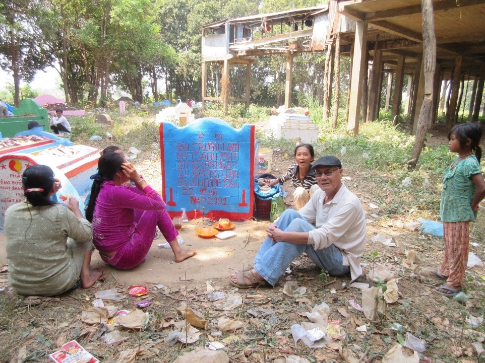 Sau khi thắp hương, nhổ cỏ, vun sới mộ phần, mọi người ngồi quanh chuyện trò ăn uống. Dường như ai cũng cảm thấy mãn nguyện vì đã làm xong chút bổn phận, cuối năm, với kẻ đã khuất.