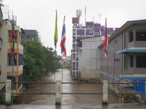 Tôi chỉ nôn nao muốn biết coi cái vụ “vượt biên bằng đường bộ” nó lạ lẫm ra sao thôi. Và sự thực thì nó chả ra cái (con bà) gì cả. Lằn ranh thiên nhiên giữa hai nước chỉ là một dòng nước đục, nối liền bởi một cây cầu ngăn ngắn. Ngay chính giữa cầu là hai lá cờ khác mầu, cắm kế cạnh nhau. Bên này là nước Thái, nhích thêm một gang tay là qua đất Miến rồi. Hết.