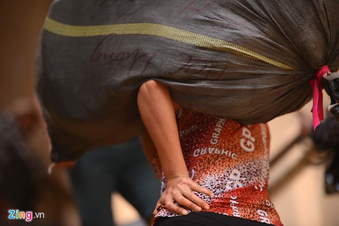 Có những bao tải nặng cả tạ, vai chưa đủ khỏe, các chị phải dùng tay chống ở hông cho đủ lực. Nhiều người đàn ông nhìn thấy cũng phải nể phục. Hầu hết các chị em ở đây đến từ các tỉnh Nam Định, Yên Bái, Phú Thọ, Hưng Yên…