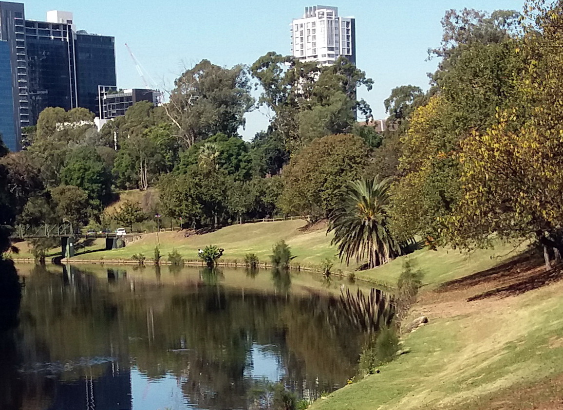 Sáng này, nghe tôi than cái cột sống lưng thoái hóa, không thể đi bộ quãng đường xa, anh sui Ngọc Thành chỉ đưa tôi ra trạm xe bus ngay trước nhà để lên Cabramatta uống cà phê. Ngồi cà phê Nhớ cả buổi, anh mới hỏi tôi có thể đi dạo công viên ở… hơi xa một chút được không. “Đi dạo mấy cái công viên ở vùng Cabramatta, Liverpool này thì không có gì lạ nhưng công viên ở Parramatta thì đặc biệt tĩnh lặng. Thú vị lắm, ông đến sẽ ưng ý liền!”, anh Thành diễn giải thêm. Thế là hai bạn già ung dung ngồi tàu điện đi Parramatta. Từ nhà ga ra đường phố, Parramatta thật sầm uất, nhộn nhịp, và đúng như anh Thành ‘dân Cabra.’ nhận xét, cư dân Parramatta hầu hết là gốc Úc, Âu da trắng, rất ít người gốc Việt, nên không ồn ào như ở Cabramatta, đường xá, vỉa hè rất sạch mà hầu như không thấy có góc nào nhếch nhác. Tuy nhiên, hai bạn già dù vẫn không có gì vội vã vẫn không hề rề rà dừng lại nơi nào. Chúng tôi đi một hơi, bình thản rời khỏi các khu phố thương mại và phố hành chính tráng lệ, nguy nga đầy màu sắc để sớm tìm đến mục tiêu hôm nay: công viên Parramatta.