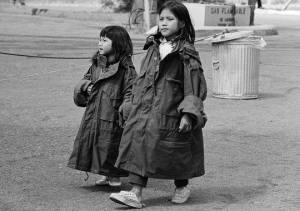 hai cháu tị nạn duyệt binh dàn chào