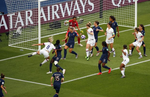 Mỹ – Pháp 2-1: Ở vòng tứ kết, lần thứ hai ở giải thế giới 2019, Mỹ đã cho một đội mạnh khác “bỏ cuộc chơi”. Trước đội chủ nhà chơi trên sân nhà ở Paris với hơn 45 ngàn Parisiens đá banh bằng lòng ái quốc, bằng miệng, lần đầu tiên đội Mỹ phải lấy cái test cả về thể lực, lẫn tinh thần. “And we passed the test proudly” với công lao lớn nhất của đội trưởng trận này: Megan Rapinoe.
