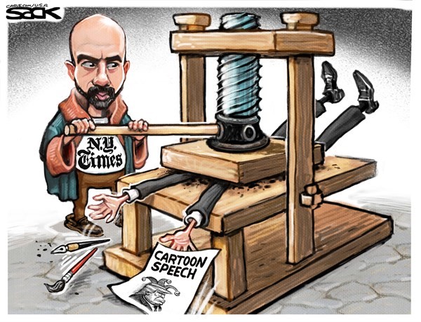 Có lẽ nó cũng không MỚI gì nếu theo dõi thường xuyên tranh biếm họa trên báo này nhưng nó LẠ là ở chỗ xứ tự do dân chủ như Hoa Kỳ mà Bản tu chính Hiến pháp Thứ nhất từ 1791 đã bảo đảm, trong nhiều quyền khác, còn có quyền tự do ngôn luận và tự do báo chí, vậy mà tờ báo trên lại tự động từ bỏ một truyền thống báo chí có tự lâu đời như tranh biếm họa là làm sao?