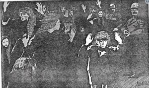 Bức tranh diễn tả lính Do Thái với sao David trên mũ sắt đang lùa đàn bà và trẻ con Lebanon với khăn trùm đầu tiêu biểu của dân Palestine và Ả Rập. Nó ₫ược dựa vào bức hình nổi tiếng chụp ngày 19/4/1943 sau cuộc nổi dậy của dân Do Thái trong ghetto ở Warsaw (Ba Lan) và lính Đức Quốc xã đang lùa họ, chở tới các trại tập trung để thủ tiêu.