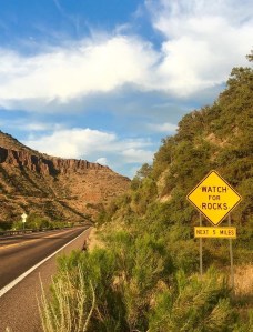 Sau những đám cây rừng và cây sồi đã thấy núi đá cao sừng sững, và những ngôi nhà cheo leo trên sườn núi. Rải rác đây đó bên đường dốc, những bảng hiệu Watch For Ice (Coi Chừng Nước Đóng Băng), chứng tỏ mùa Đông ở đây lạnh lắm. Hết hẳn thông, nhiều loại cây khác thay thế, núi đỏ dần dần nhô ra. Lại những bảng hiệu khác, Watch For Rocks (Coi Chừng Đá Tảng).