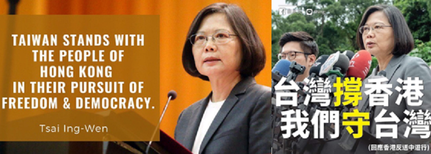 – Tổng thống Đài Loan Thái Anh Văn tuyên bố ủng hộ nền độc lập của Hồng Kông