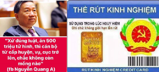 Tấm gương đạo đức của Bác ra sao mà ông Chủ Tịch UBNDTP đã lạnh lùng “cắt bỏ 6700 cây xanh trên 190 tuyến đường Hà Nội” ? Còn ông Chủ Tịch UBND Hà Tĩnh thì thản nhiên “ký nhiều văn bản cho công ty Formosa tự giải phóng mặt bằng để xây dựng đường ống xả nước thải không đúng theo quy định.” Tuy thế, cả hai đều không bị xét sử gì ráo trọi, và đều hạ cánh an toàn vì “nếu xử đúng luật (theo lời . T.S Nguyễn Quang A ) ăn 500 triệu tử hình, thì cán bộ từ cấp huyện, vụ, cục trở lên, chắc không còn mống nào.”