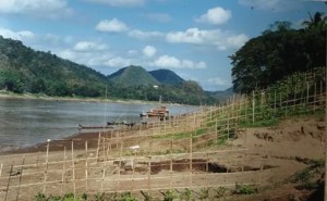 Hình 2: Khu vực dự kiến xây đập Luang Prabang 1410 MW trên dòng chính sông Mekong, chỉ cách thị trấn Luang Prabang 25 km.; hình chụp khúc sông Mekong chảy qua địa phận cố đô Luang Prabang, đã được UNESCO công nhận là Khu Di sản Thế giới / World Heritage Site từ năm 1995, vốn được ca ngợi như một trong những thành phố cổ đẹp nhất Đông Nam Á thì nay Luang Prabang đang bị thương mại hóa và cả Hán hóa. [Nguồn: photo 2000 by Ngô Thế Vinh]