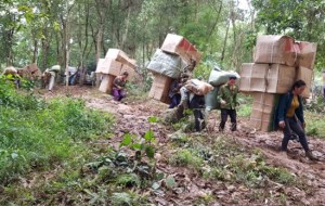 chuyển hàng lậu với lưng vai của mình