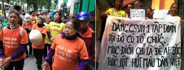 Từ đó, Việt Nam trở nên một “cường quốc của dân oan.” Giới người này vật vạ, la lết, lang thang, vất vưởng trên khắp mọi nẻo đường đất nước hoặc “co dúm thút thít” trong mảnh đất (còn lại) mà diện tích chỉ đủ dựng một túp lều, kỳ dư đã bị thu hồi với giá đền bù “mỗi m2 bằng giá một… cốc bia” – theo như ghi nhận của blogger Đào Tuấn.